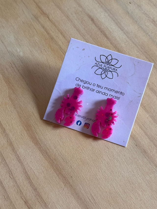 Brincos mini Lagostas com cores variadas, tamanho pequeno, com pinos para furo na orelha em aço inox.