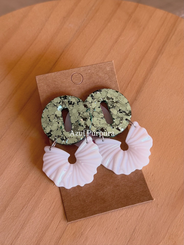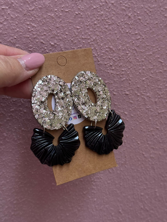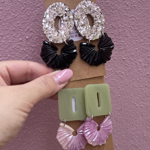 Brincos Muchi em cores vibrantes com glitter brilhante.