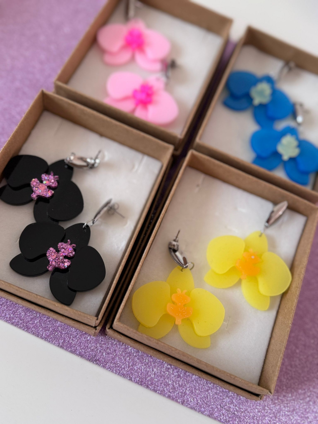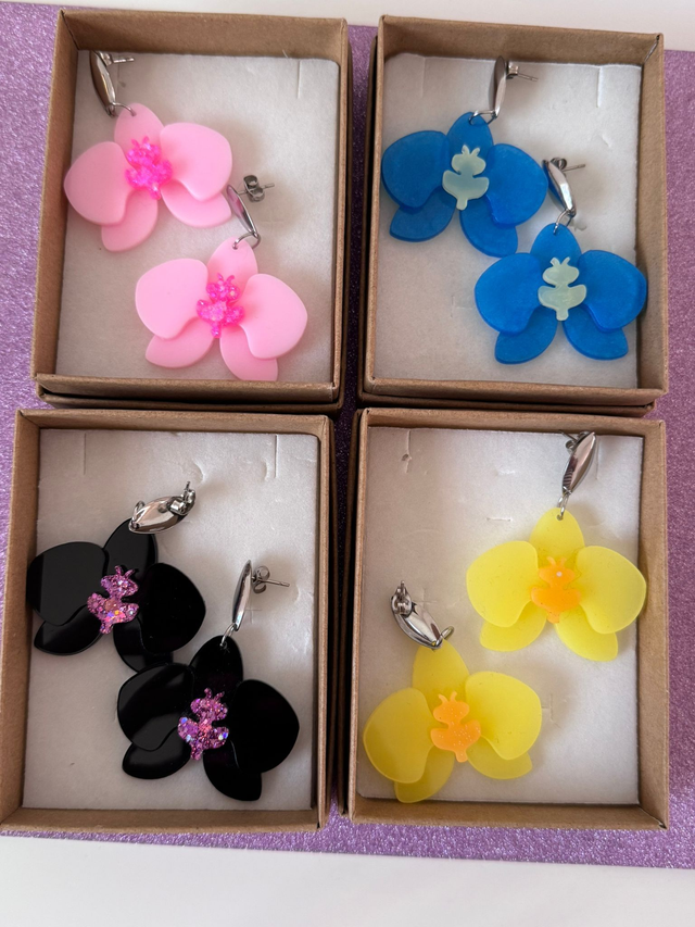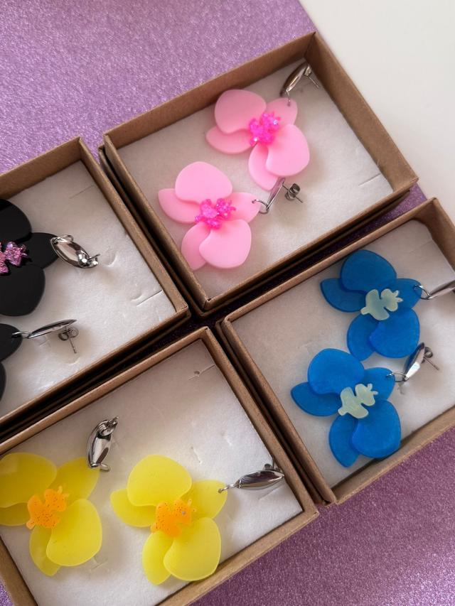 Brincos Orquídea Thay, modelo muito elegante que transforma uma orquídea numa pequena obra de arte para andar na tua orelha.