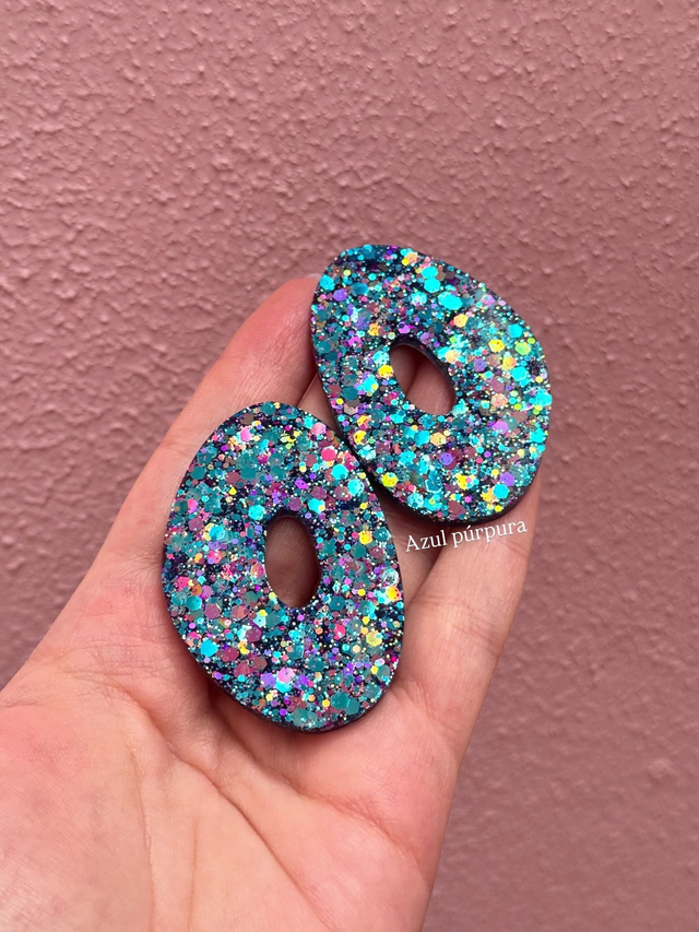 Brincos XL elegância em glitter, disponível em várias cores diferentes.