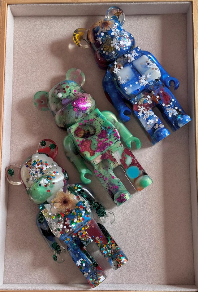 São ursos compostos apenas por resina Epóxi e matérias primas que uso para complementar o meu trabalho.